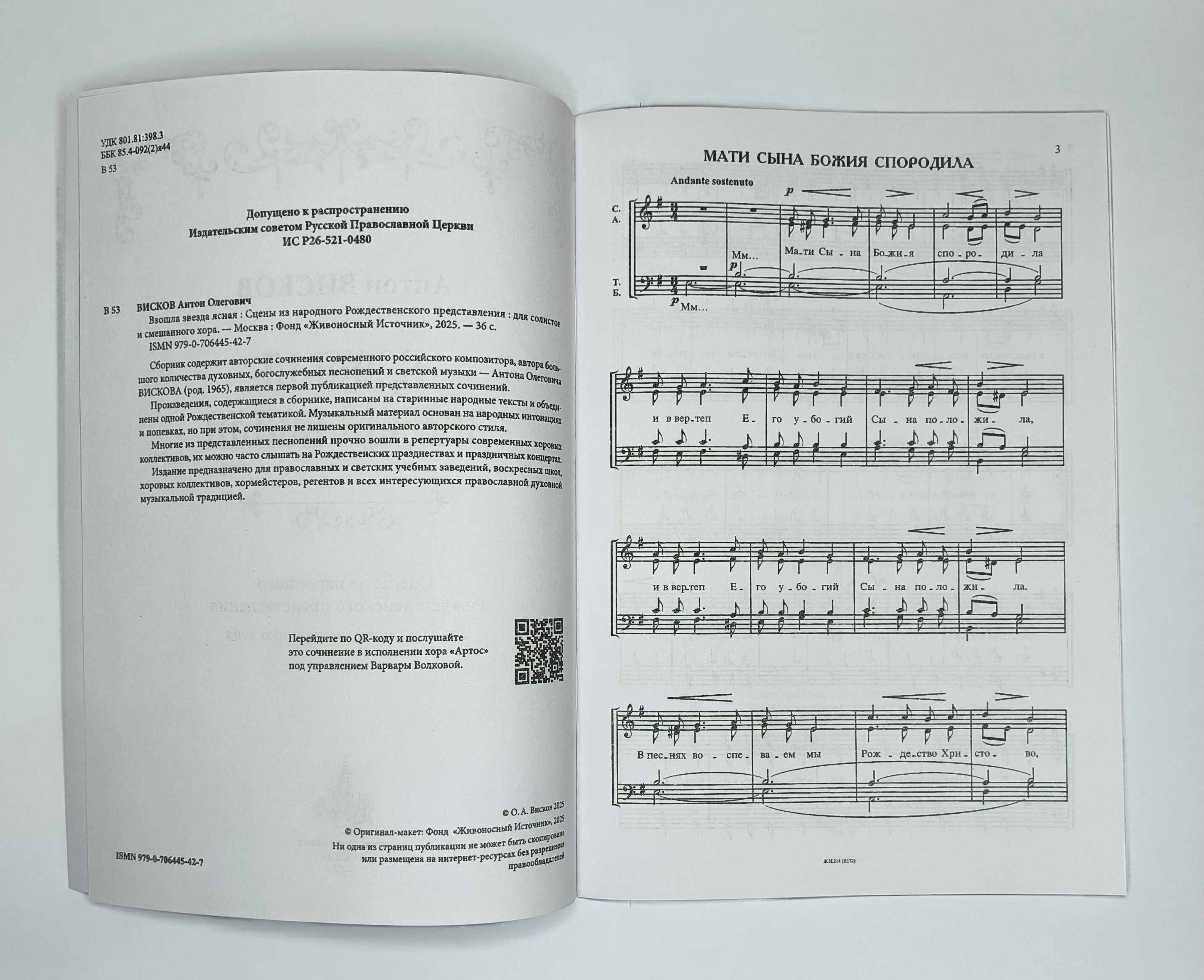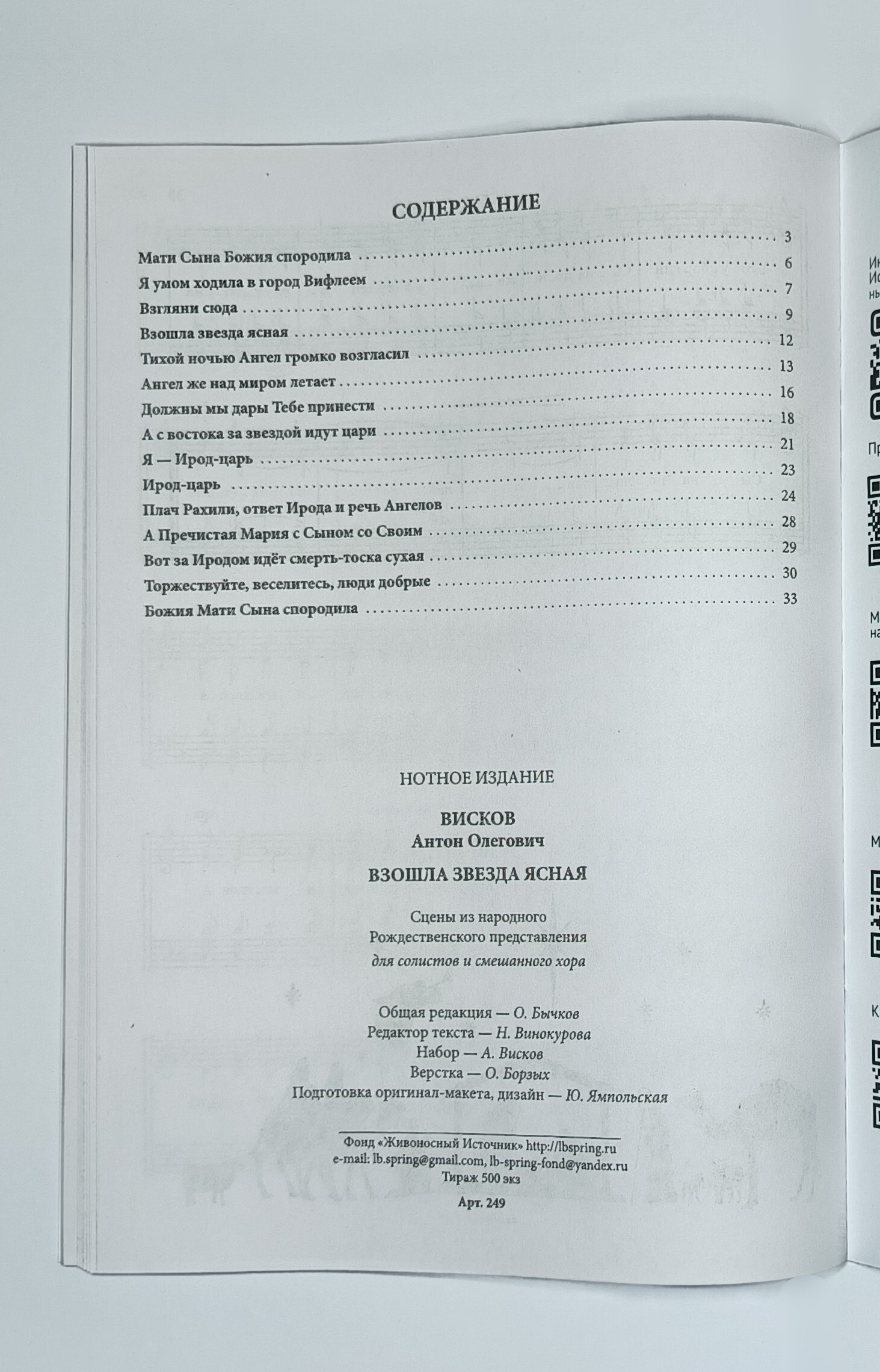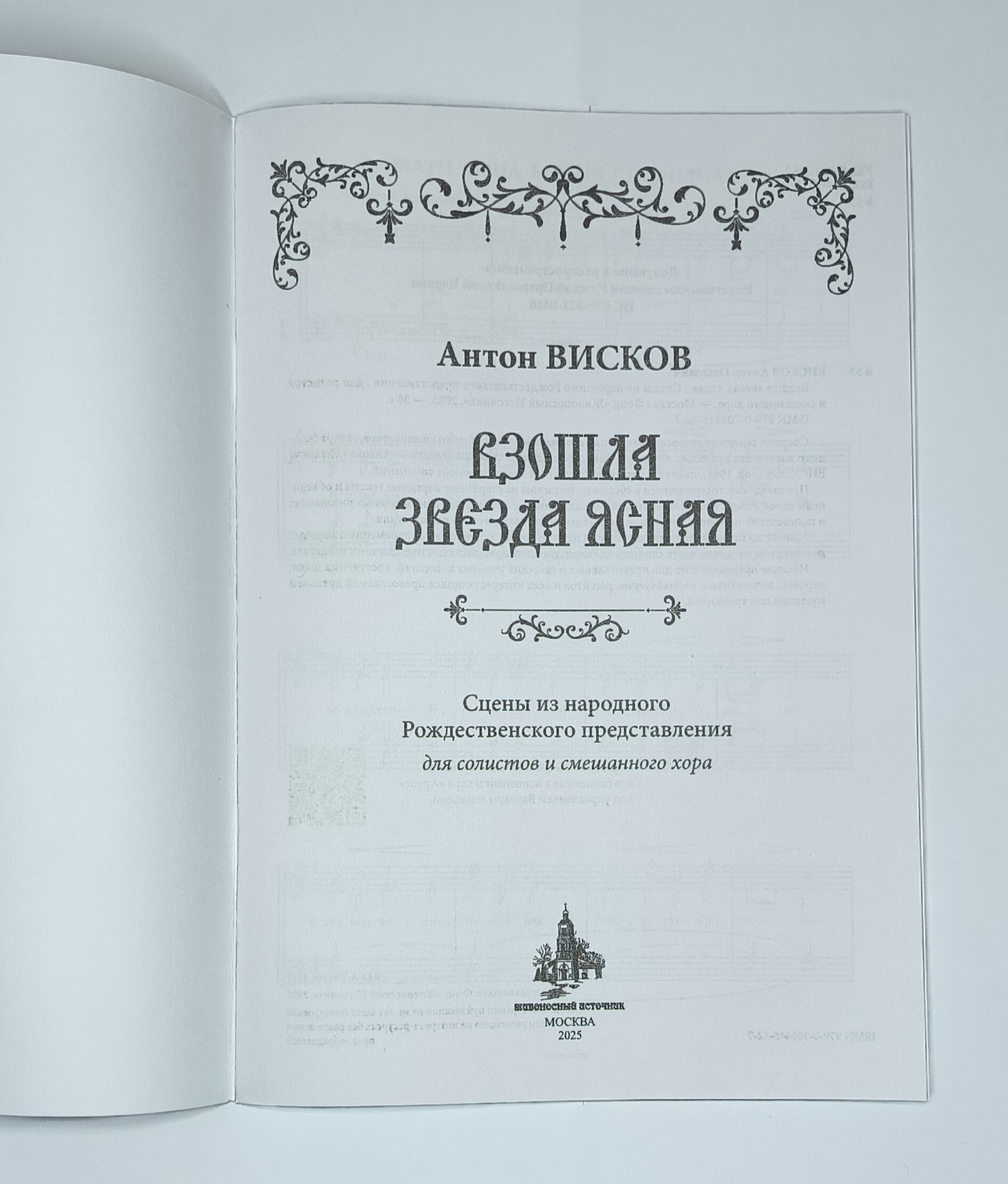 Арт. 249. Антон ВИСКОВ. Взошла звезда ясная : Сцены из народного Рождественского представления : для солистов и смешанного хора. — Москва : Фонд «Живоносный Источник», 2025. — 36 с. Брошюра.